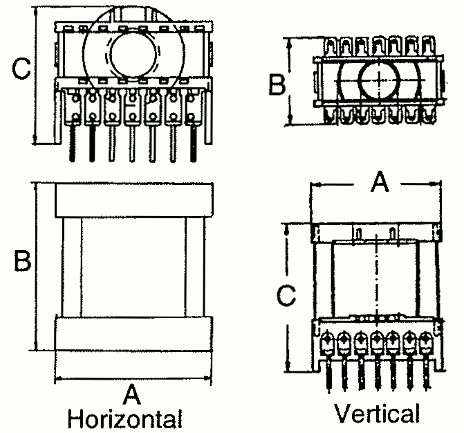 ETD transformers are also available in potted versions, either for horizontal or vertical mounting. Ask for more details on this.