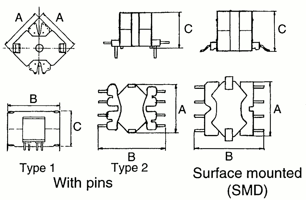 | EFD 20 | 21.5 22 | 24 28 | 10.0 10.0 | Pin SMD | ![]() | ![]() |